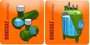 Вертикальные газгольдеры «BONEGAZ» используются в основном для автономной газификации дома или любого другого объекта, если есть ограничения по площади земельного участка вокруг строения. Вертикальный поземный газгольдер закапывают в котлован диаметром всего лишь от 1,5 м до 2,0 м, что позволяет произвести установку и монтаж газгольдера на самом маленьком земельном участке. Вертикальные газгольдеры выпускаются с объемом сосуда от 1 м³ до 5 м³. В цену вертикального газгольдера также, как и горизонтального, включено все необходимое для его эксплуатации.