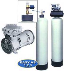 Воздушный компрессор нагнетает воздух в водную магистраль или емкости с давлением до 0,6 МПа (6 атм). Для проведения процесса аэрации водовоздушная смесь поступает в контактную емкость, которая предназначена для отстаивания и разделения на составляющие водовоздушной смеси, формирования хлопьев гидроокиси железа, а также выполняющая функции гидроаккумулятора. Через воздухоотводчик в верхней части емкости стравливаются излишки кислорода, азот и частично углекислота.